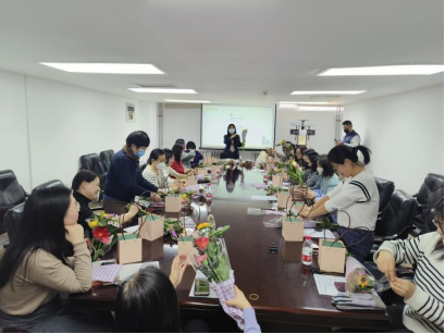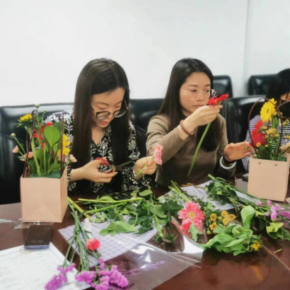 3月9日下午,地空学院工会以“诗情花艺”为主题组织女职工开展庆祝三八节的活动。活动邀请了与我校有合作的宁波银行北京分行的工作人员教授插花技艺,学院20余名女工会员参加了此次活动。