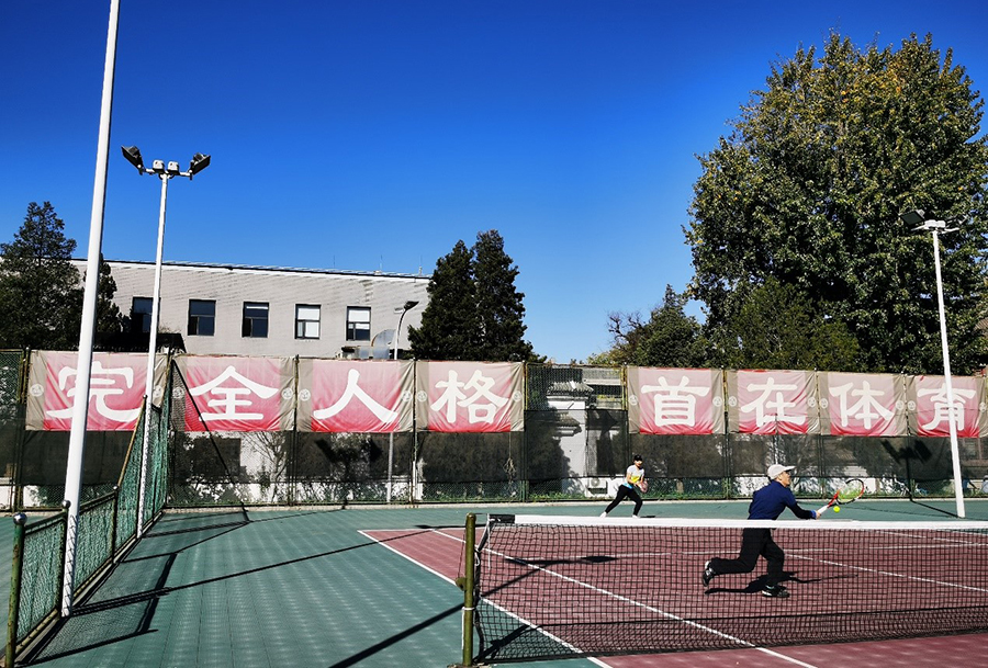 天色逐渐放晴,阳光明媚,各参赛队伍的队员陆续来到体育场,有条不紊地进行热身,秋日的寒意被运动员们热情与朝气驱散。9:00由教工网球协会副会长、国际关系学院党委副书记祝诣博主持开幕式,副主席张小萌、教职工网球协会会长、体育教研部副主任刘茂辉分别致辞,最后,北大教职工网球协会荣誉会长、生命科学学院赵进东院士为比赛开球,比赛正式开打。