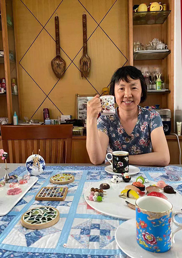 纪念品是制作一幅 “慧心相於,瑞氤葱茜”布艺拼接赠送给吴老师,由擅长手工制作的冯洁老师担任总设计师,20名在职女教工集体上阵。作品由不同几何形状、花色的碎布先缝制成20块方格布艺,再通过一整套复杂工艺,最后拼接加工成一块170cm*90Cm的拼布餐垫。