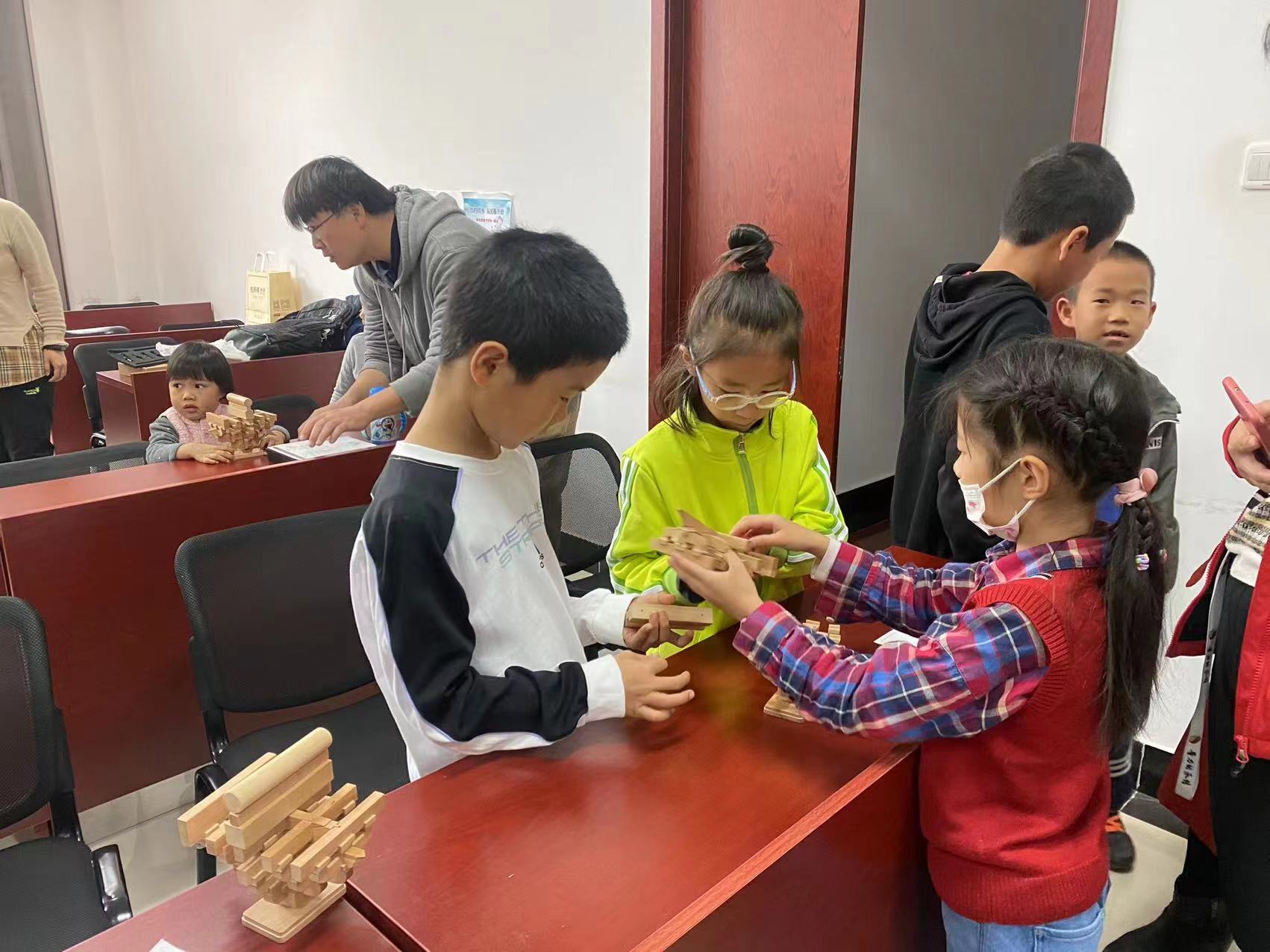 本次活动选择了宋代建筑技术书《营造法式》中规定的宋式斗栱模型,通过建模了解斗栱结构的基本构成。在俞莉娜老师的带领下,小朋友们与家长通力合作,分别顺利地完成了模型的搭建,从中了解到了古代斗栱“斗上架栱、栱上架斗”的基本建构逻辑,体会了古代工匠在建筑设计中的智慧。