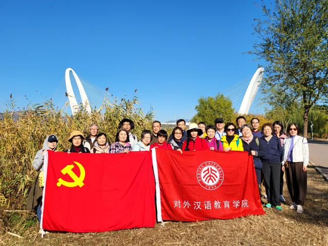 2022年10月23日,对外汉语教育学院工会组织教职工开展秋季健步走活动,上午九时,老师们从永定河公园出发,徒步马拉松路线进入首钢园。健步走活动总路线约十公里,老师们在享受健康运动的同时也,欣赏到了大片的湿地景观,近距离观赏首钢工业遗址、滑雪大跳台、丰沙铁路线等人文景观。