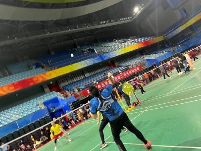 我院羽毛球队今年在乙组,共有55支队伍,光看队伍数量之多便可知晋级路上困难重重。幸好被分到了只有三支队伍的第十五组,而每组的前二名都可以出线并进入淘汰赛,属实是个好签。然而,国关教工羽毛球队并不会满足于出线这种基础目标,况且以第一名的身份出线的话淘汰赛就会对上其他小组的第二名,众队员自然是一开始就马力全开。初战在1日17:30开始,对手是教发一队,闫岩老师、曹宝萍老师以过硬的实力和丰富的经验撑起女选手半壁江山,闫老师不断左右调动对手,曹老师一直在前场封网,不到十分钟便大比分获得胜利。此时,完全料不到女双会以迅雷不及掩耳之势获胜的男双队员吕晓宇老师还在比赛场外漫步。只见裁判不断呼喊男双上场且李扬帆老师急忙高喊“晓宇人呢?打电话给他啊!”,幸好吕老师在被取消资格之前赶到场上。