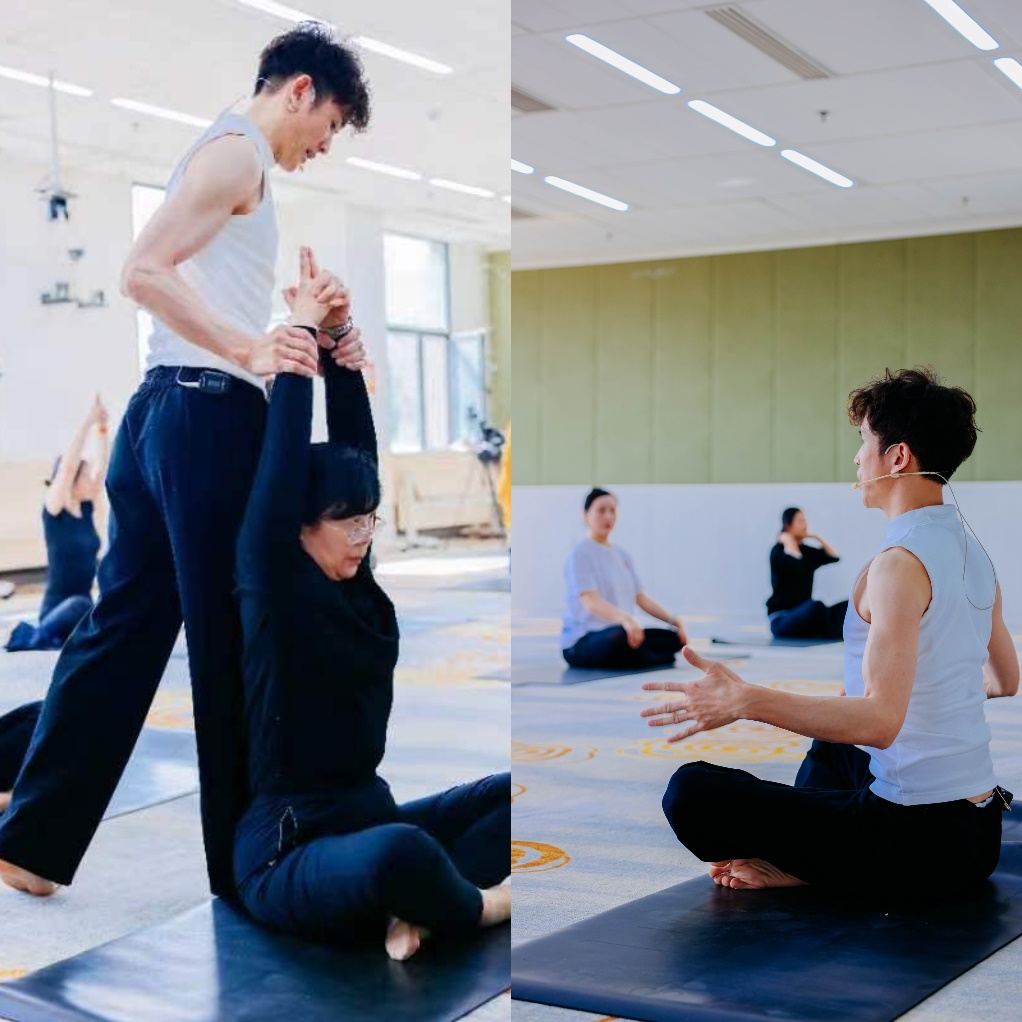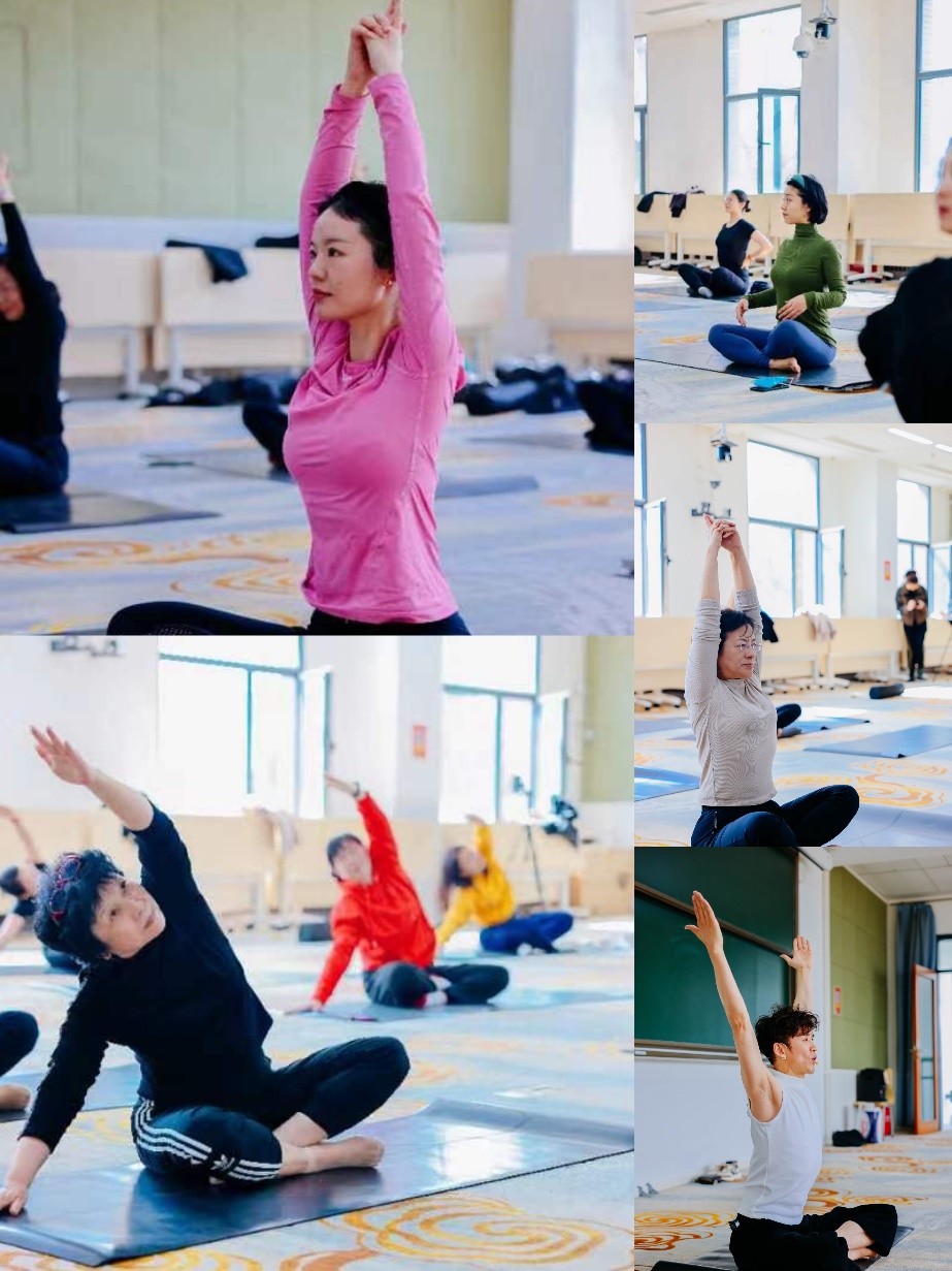 在瑜伽老师的带领下,老师们放松身心、舒展身体,充分感受到瑜伽运动带来的快乐与健康。