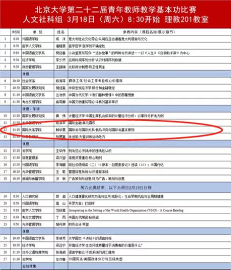 北京大学第二十二届青年教师教学基本功比赛将在3月18日(周六)举行,国际关系学院工会在工会主席闫岩老师和副主席霍艳丽老师的密集筹备、用心策划下,连续组织两轮讨论会,旨在帮助参赛教师赖华夏老师尽快熟悉比赛流程,熟练掌握课程内容。通过模拟现场教学展示环节,发现青年教师现场教学演示中的问题和不足,解答青年教师对于比赛准备中的疑问。讨论会上邀请历届参赛选手现场分享比赛经验,给新一届参赛教师加油打气。国际关系学院历来重视青年教师的选拔和培养,学院工会积极选派优秀青年教师参加各类教学培训和比赛并屡获佳绩。