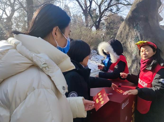 从一体到五四操场,高耸的博雅塔与矗立的教学楼,诉说着对新春的向往;求学的孩子们与参访的游客们,代表着对未来的笃定。直至终点,集齐福印。
