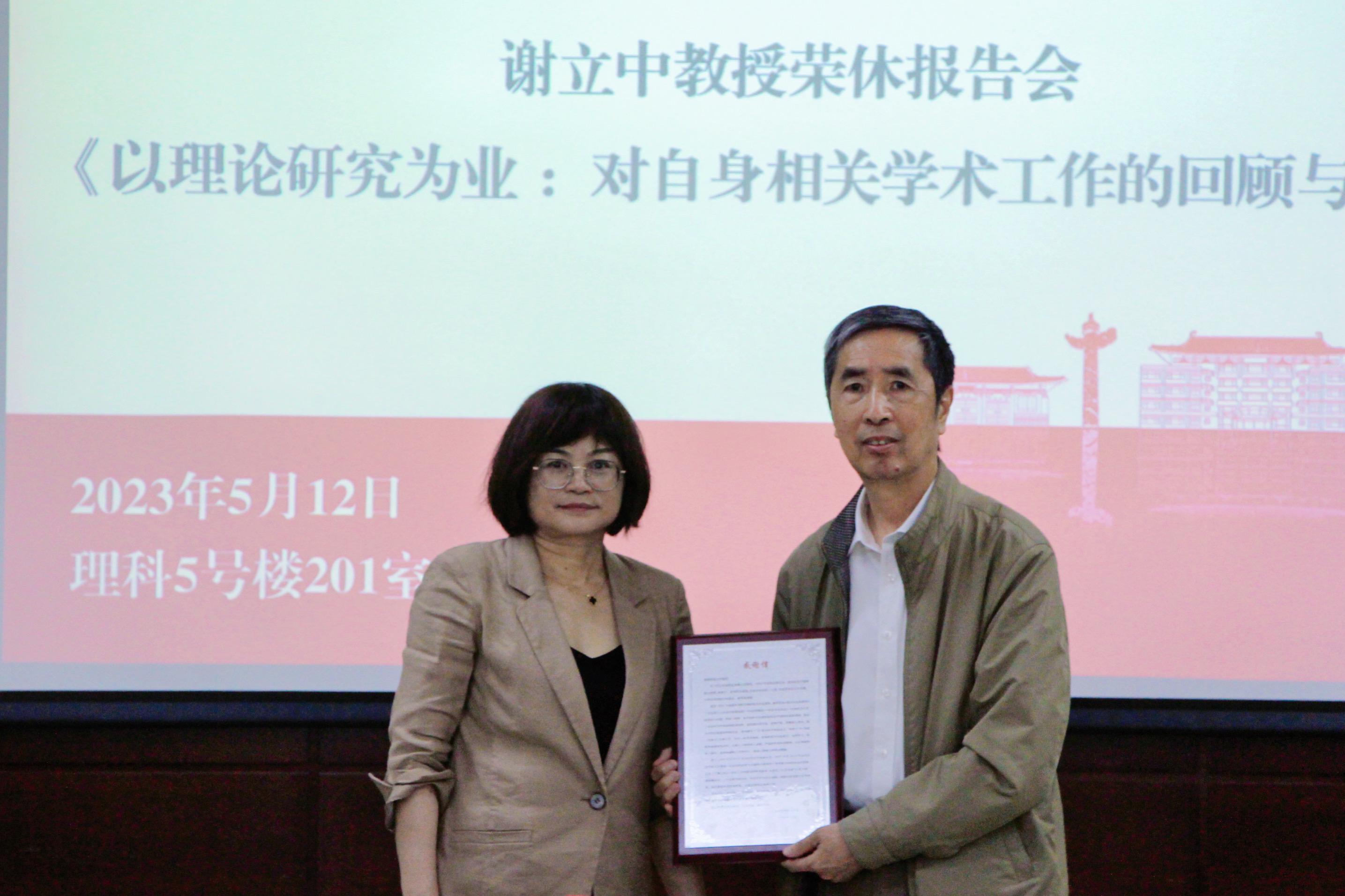 副系主任刘爱玉教授向谢老师赠送感谢信