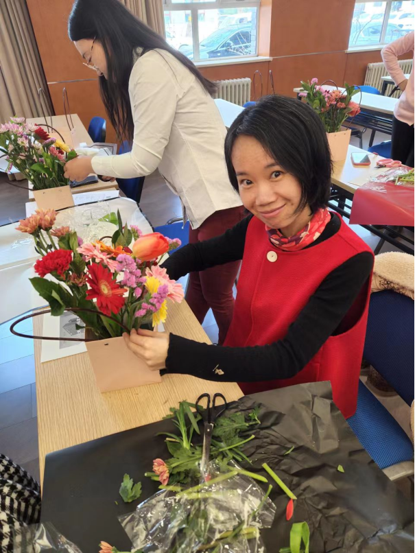 花艺活动进行的同时还伴以抽奖活动,方雪老师、曾育平老师和刘杨老师分别获得精美的马克杯和青花瓷器等奖品,多位老师获得护手霜奖励。活动在一片欢声笑语中落下帷幕,大家手捧各自制作的插花作品拍照留念,更加期待明年节日的到来!