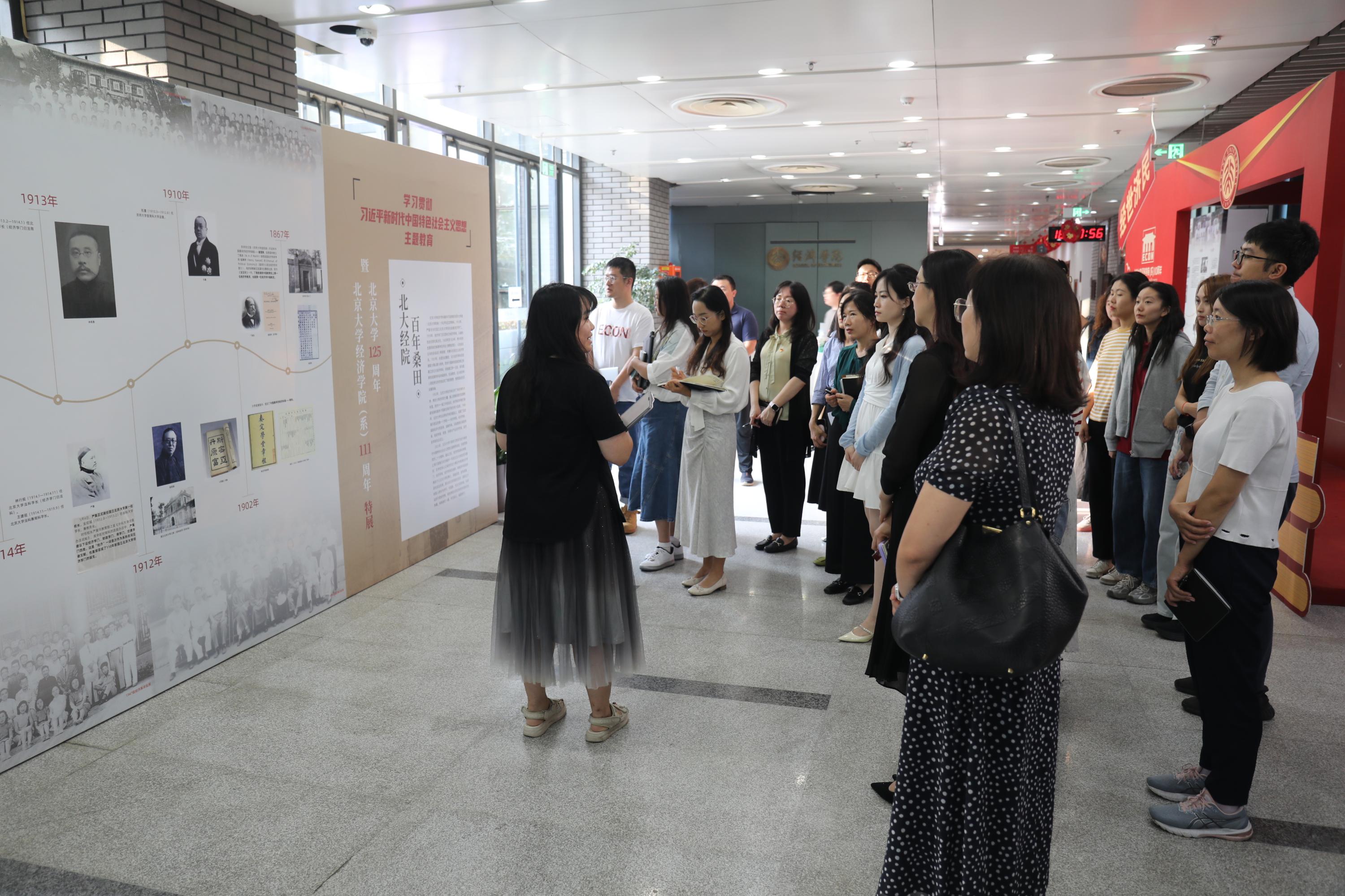 9月13日下午,经济学院行政工会小组组织20余名师生共同参观了位于院楼一层大厅的《学习贯彻习近平新时代中国特色社会主义思想主题教育暨院庆特展》。在学院校友办公室陈稳老师的详细讲解下,老师们回溯历史。特展第一部分从1867年开始,至2012年北京大学经济学院建院(系)100周年,以时间线记录了北大经济学科的发展变迁,在学校历史中窥探北大经济学人的使命担当。特展第二部分讲述了经院进十年的故事。在过去的十年间,北京大学经济学院坚决贯彻落实党的教育方针,落实中央重大决策和学校总体部署,始终与时代同行,与学校的改革发展同心、同向,不断探索适合自身的发展道路,完成了一系列科研、教学、智库、社会服务成果。在陈稳老师声情并茂而又详实流畅的讲解中,老师们共同追忆历史,感受北大经院人那份与时代、与国家、与北大同呼吸、共命运的不变经世情,寻找一代代经院人共同书写的历史华章。