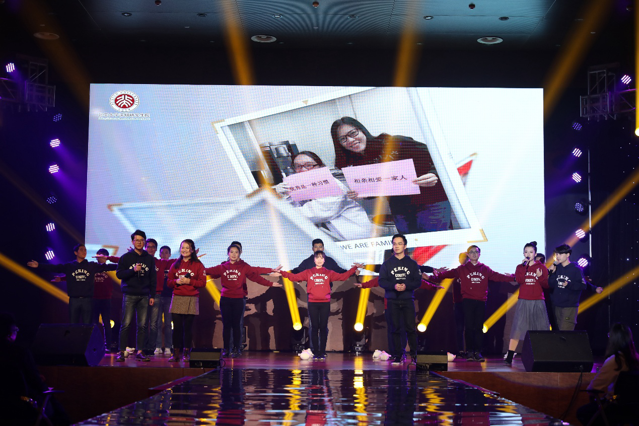 学年工作总结会结束后,2019年新春团拜会在一支由各学院及各职能部门教职工共同出演的创意MV《南燕101》中正式拉开序幕,该MV由2018年大热的《卡路里》改编,在轻松欢脱的氛围中描绘了南燕师生忙碌有序的学术与工作日常,在欢笑中引发了在座观众的情感共鸣。