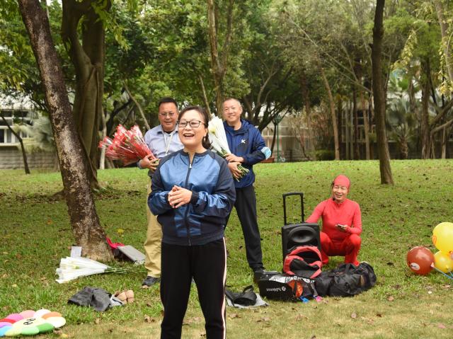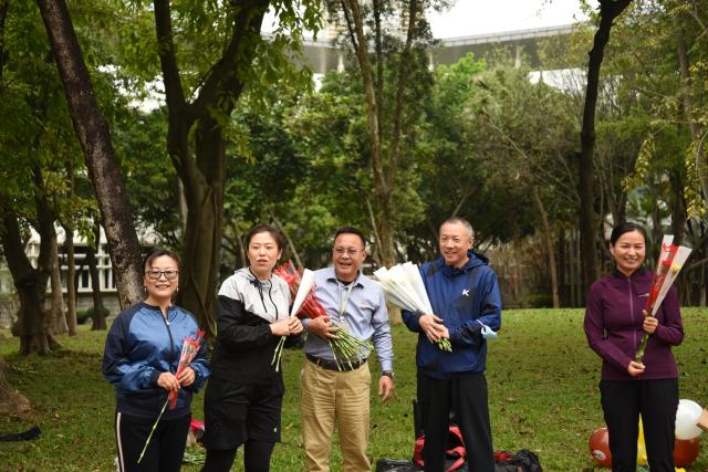 寒尽春生,树头新绿未成阴。2021年3月8日,春意融融的日子,深研院工会用坚持了八年的传统项目“户外瑜伽”来庆祝三八国际妇女节。今年的主题是“阳春三月天,健康女神节”。我院工会主席安晓朋老师出席并讲话,她祝愿女老师们身心健康愉悦,生活幸福美满。工会常务副主席武娟老师、赵亚波老师、丁嘉辉老师和党群办副主任吴华南老师代表工会和男教职工为现场的参与者赠送鲜花,祝贺节日。现场有三十余位女教职工参加活动。