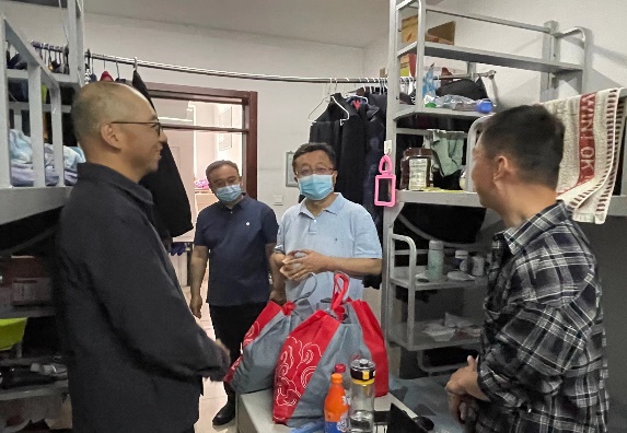 5月4日下午,继续教育部部长张西峰一行赴圆明园校区调研防疫工作。张西峰等详细了解了学员在圆明园校区参加核酸检测的情况,现场沟通了少数民族学员的餐饮安排等。张西峰到宿舍为学员代表送上慰问礼包,并致以诚挚的节日问候。他介绍了目前学校的防疫政策,希望大家有困难能及时向继续教育部反映,他说学校一定会为访问学者和进修教师的学习生活提供有力保障。学员们纷纷表示会积极配合学校的防疫政策,并对学校细致的安排表示感谢。