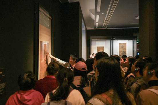 北京大学社会学系教授渠敬东和中国美术馆青年专家薛帅杰、吴彧弓共同为参观者导赏,以“洋洋大观”与“畅神归处”两个专题为轴,系统地普及了山水画基本知识与发展脉络,对其中重要画卷进行详细讲解,帮助大家理解山水中寄寓的中华文化与中国人文之品质,体悟艺术家对天地法则、人生真谛和生命意义的追索。