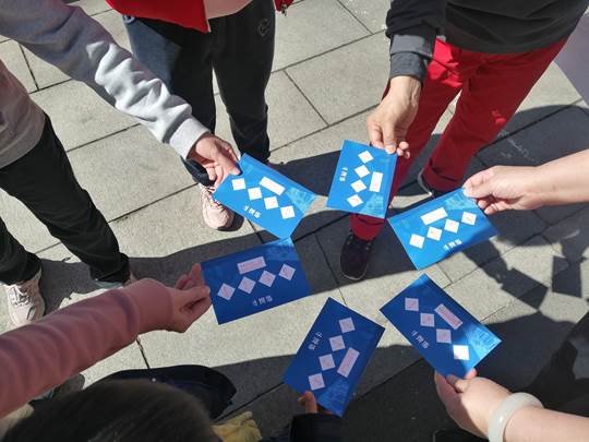 四个印章,四句祝福,在三月温暖的阳光下,教职工们迈着矫健的步伐向着四个指定打卡点进发,每打卡一个指定地点都将收获一句美好祝福。