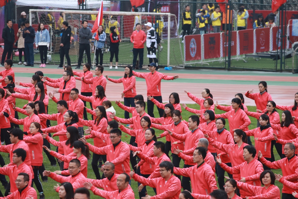在本次运动会开幕式中,机关各职能部门共有400人组成9个方阵参加了入场式;248名机关老师参加了《燕园武韵》太极拳表演。