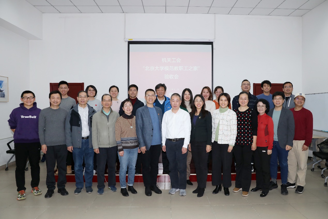 2021年12月1日,校工会“北京大学模范教职工之家”验收组来到勺园对机关工会的“建家”工作进行验收。验收组由校工会常务副主席张宝岭带队,成员包括副主席丁伟忠,副主席张小萌,兼职副主席、生命科学学院工会主席范六民,兼职副主席、外国语学院副院长、社科部副部长吴杰伟,兼职副主席、工学院党委书记孙智利,兼职副主席、继续教育部副部长迟春霞,校工会组织宣传部部长张宇。机关党委书记刘旭东、副书记袁红利,机关工会主席田越和机关工会委员、机关工会组长和会员代表近20人参加了验收交流会。会议由张小萌主持。