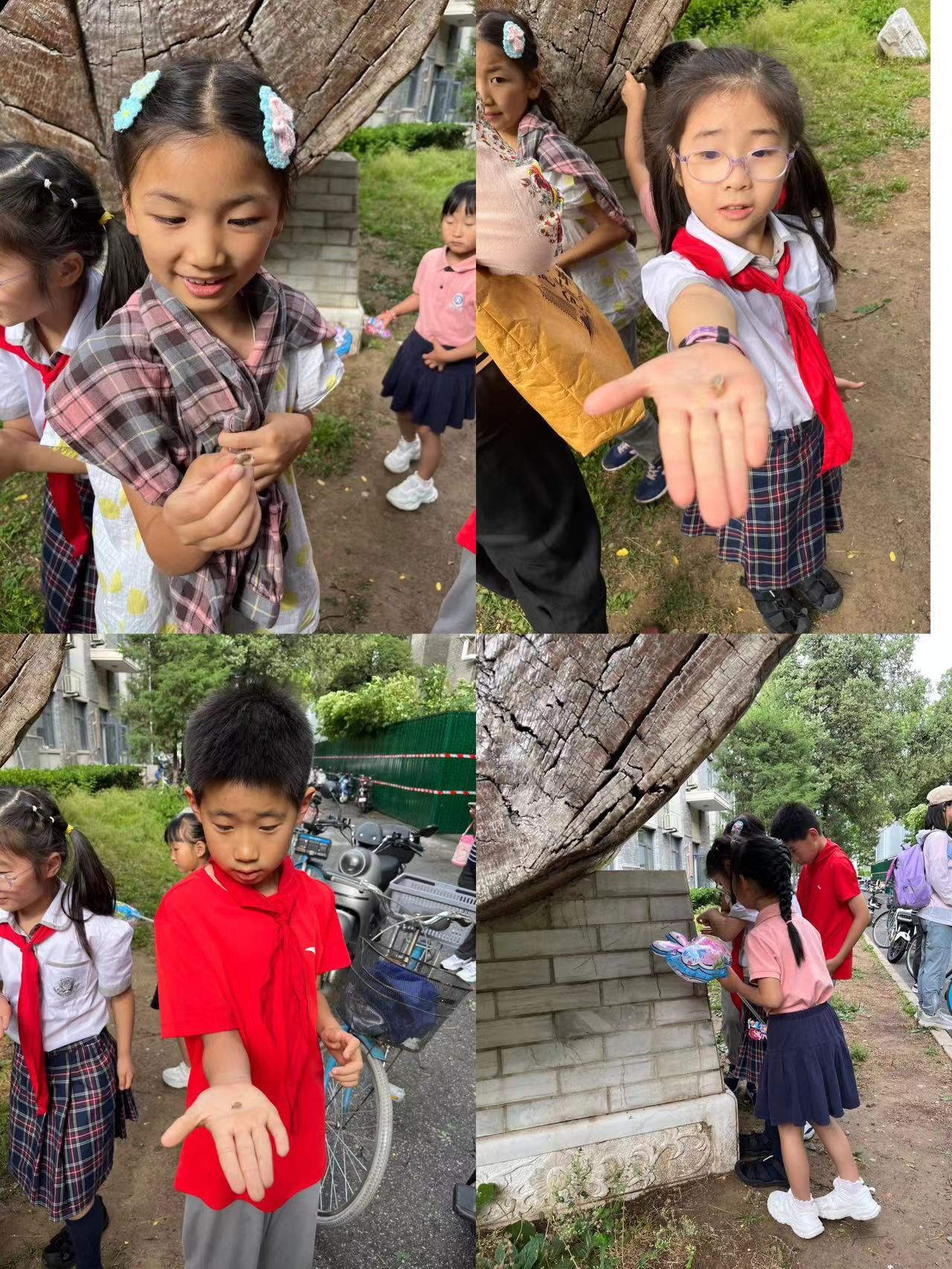 小朋友寻找并展示蜗牛
