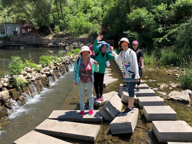 热身和分组活动结束后,大家正式踏上了神堂峪7公里户外穿越的征程。越过翠绿的平缓山丘、穿过山间的潺潺小溪,沉浸在如诗如画的自然美景中,清凉的微风拂过脸庞,神堂峪的山谷间不时回荡着大家的欢声与笑语。