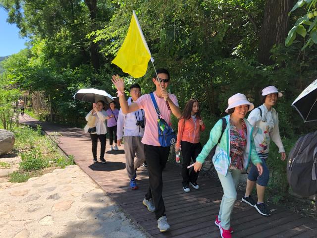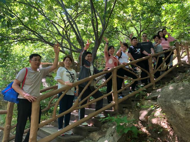 为丰富职工业余文化生活,增强职工队伍凝聚力,增进同事间的交流与沟通,餐饮中心党总支和工会组织一线员工及管理干部共计40人前往北京市怀柔区神堂峪开展户外拓展培训活动。神堂峪毗邻雁栖湖,景区内山水相依、林木繁盛、风光旖旎。由于此次户外拓展路程共7公里,因此活动开始前,餐饮中心综合办公室的老师为每人都准备了足量的矿泉水,还将活动需特别注意的事项一一告知大家,如着运动装、涂抹防晒避免晒伤等。风景秀丽的自然风光,充实多样的拓展内容使大家在紧张工作之余,可以放松心情,亲近自然,增进友谊。