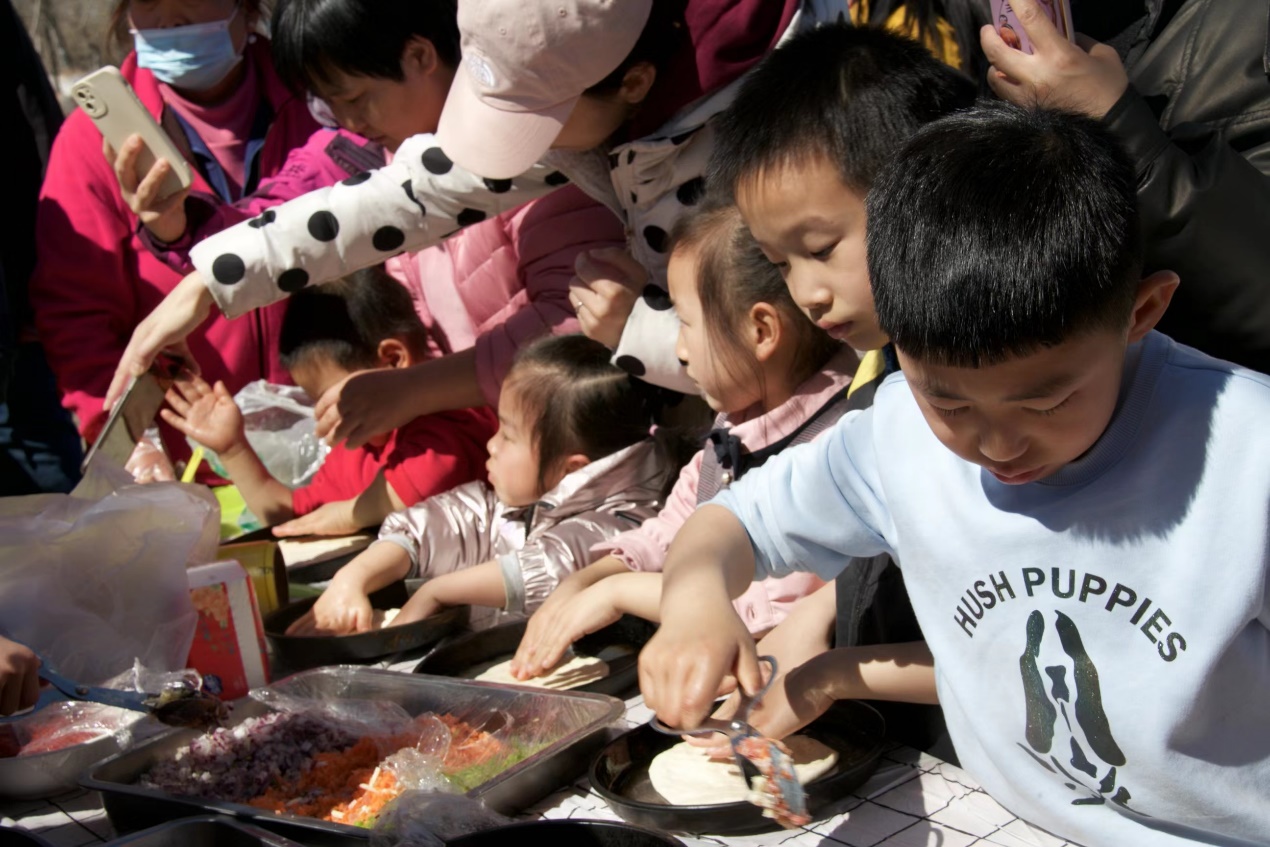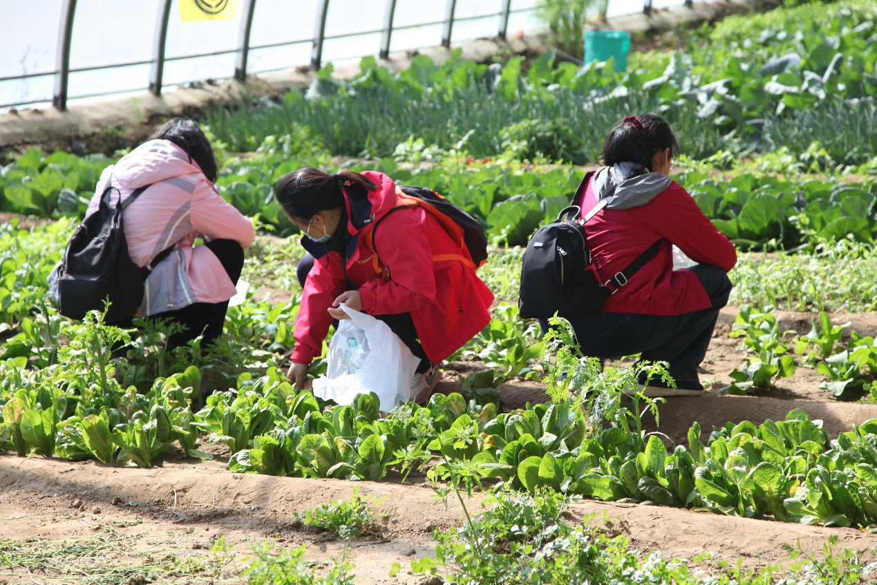 简单的田园午餐后,大家来到基地时蔬大棚和基地林场,采摘绿色时蔬和林间踏青,一起体验收获的喜悦,发现初春林间的点滴生机。孩子们跟着基地的老师,在田间地头认识了各种各样的绿色蔬菜,收获满满。