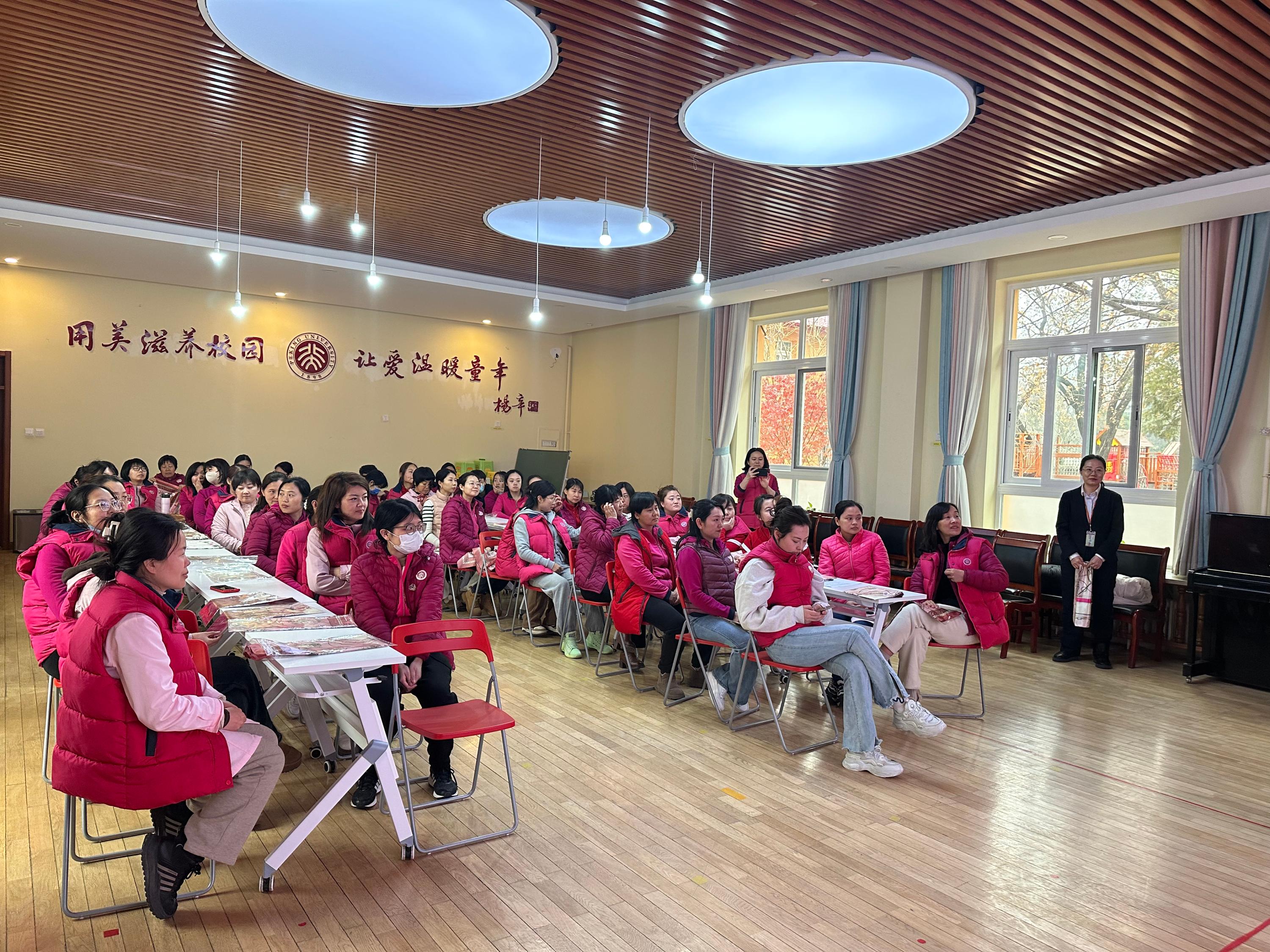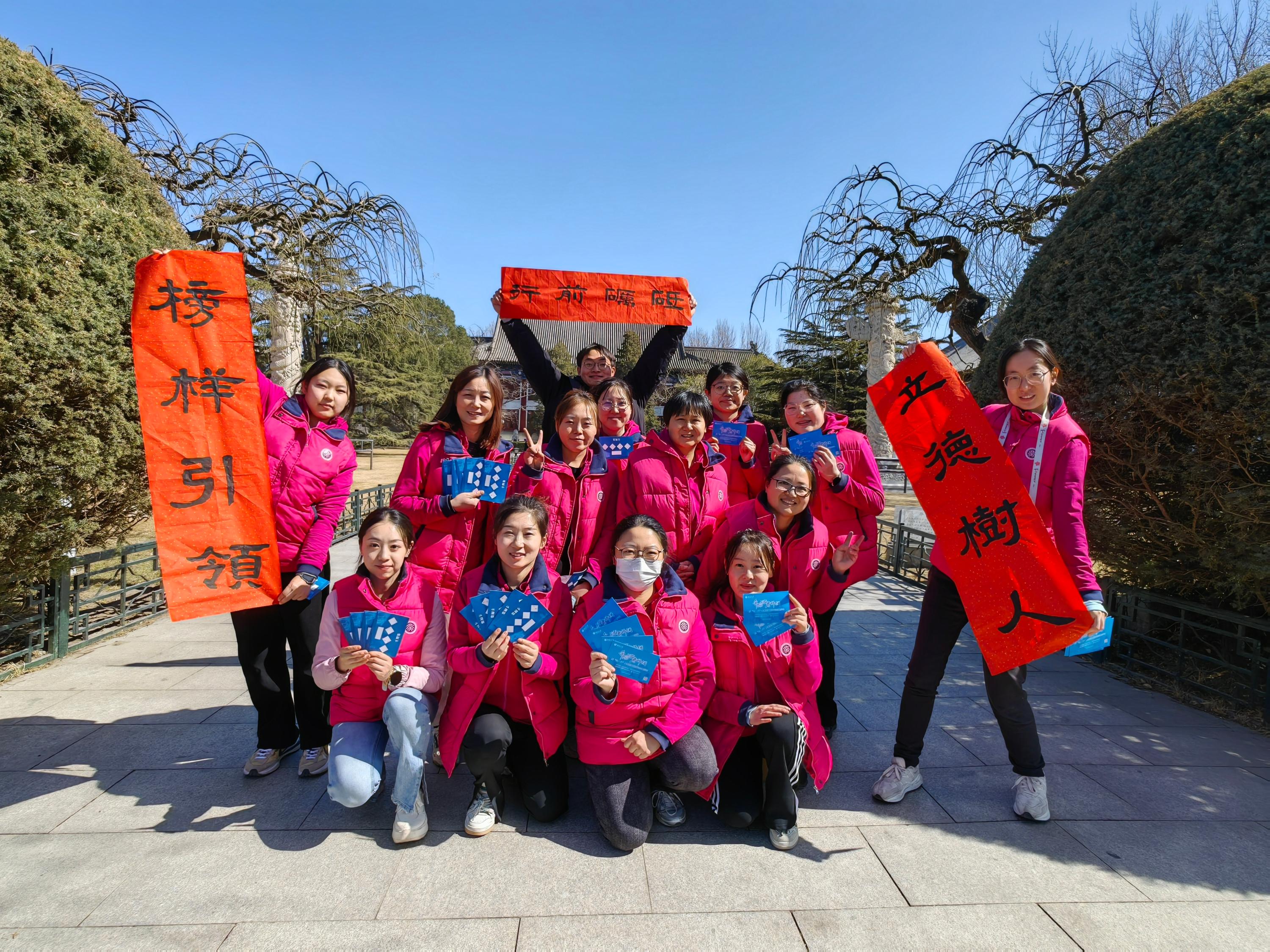 走进春天,待一朵桃花盛开,风有信花有约。3月8日中午除了留守园内值午睡的老师之外,燕东、蔚秀和新馨分园的老师们满怀热情,带着欢声笑语活动,身穿统一的园服,参加校工会举办的庆“三八”女教职工校园定向健步走活动。走在北大校园里,附属幼儿园的老师们又是一道粉红色的靓丽风景线,按照惯例老师们在博雅塔下留下了集体合影,将今年美好瞬间的定格。