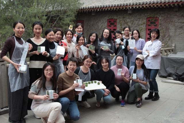 准备就绪后,大家在现场将自己的青团分批蒸熟,之后晾凉、包装、成盒,最后再贴上“青团”的纸封,一盒四个亲手制作的青团礼盒就完成啦。大家兴奋地拿着成品拍照,老师们或拿回家送给亲友,或带回办公室给未能来参加活动的同事们分享,共同品尝春天的味道。