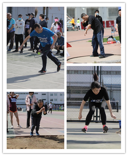 在田径赛场上,奋力拼搏的图书馆人不断挑战自我,尽显矫健身姿。曹红伟老师在男子30米托球跑项目蝉联第一名,宋庆生老师荣获第二名;杜晓峰老师在4公斤铅球比赛上“一锤定音”,荣获第二名的好成绩;张方博老师在7.26公斤的铅球比赛上也扔出了第二名的好成绩!“巾帼不让须眉”,冯英老师在立定跳远比赛上,以1.91米的成绩荣获第三名;张劲老师在30米托球跑的赛场上获得第三名;游越老师以2.02米的立定跳远成绩获得第三名。