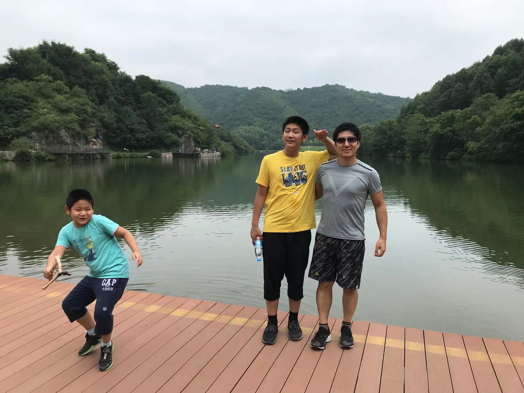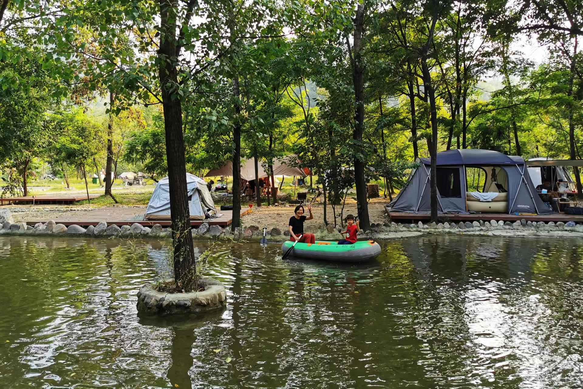 或临水而嬉,享受天伦之乐。