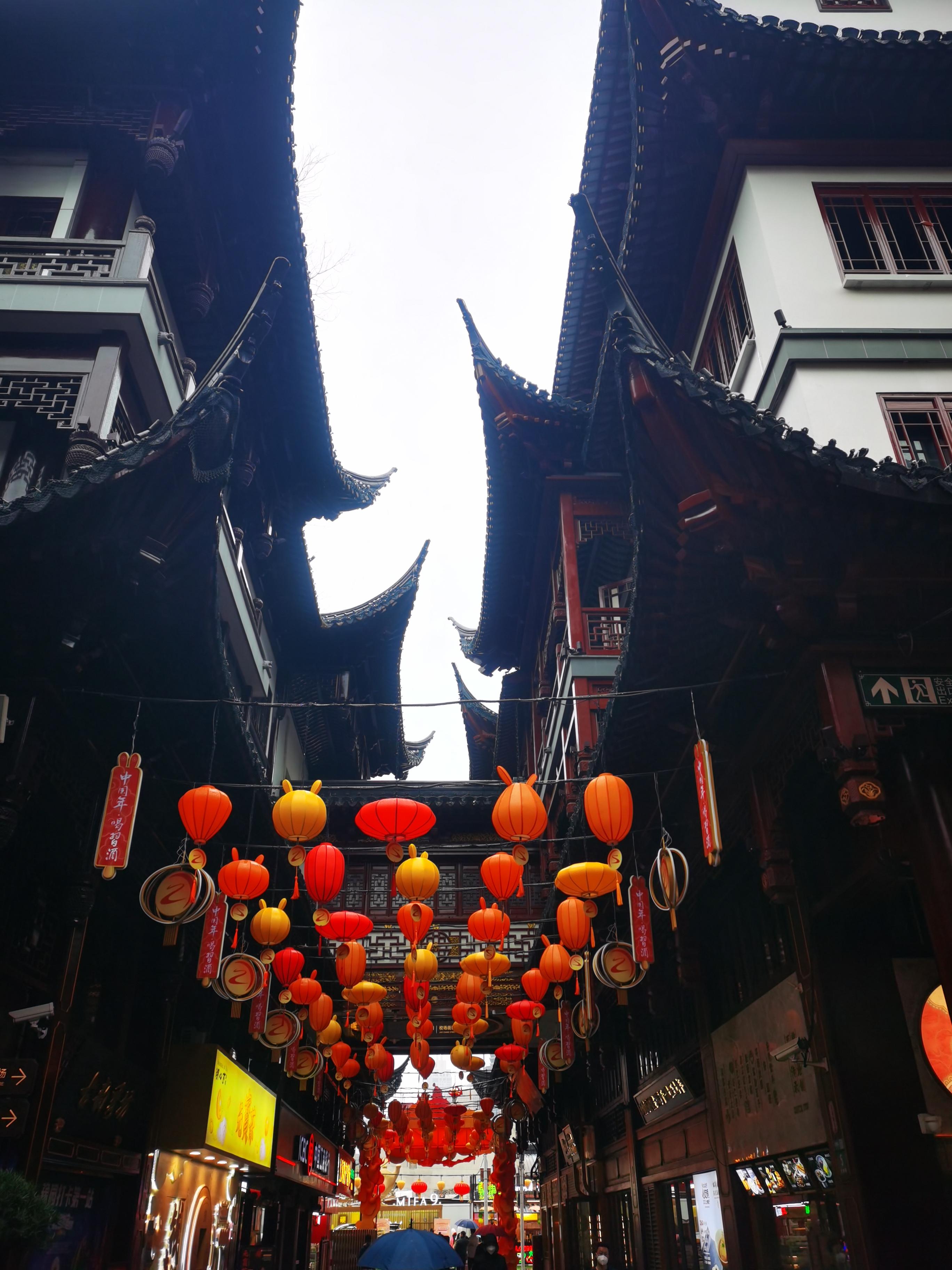 上海豫园的灯笼高高挂起,迎接新年到来。