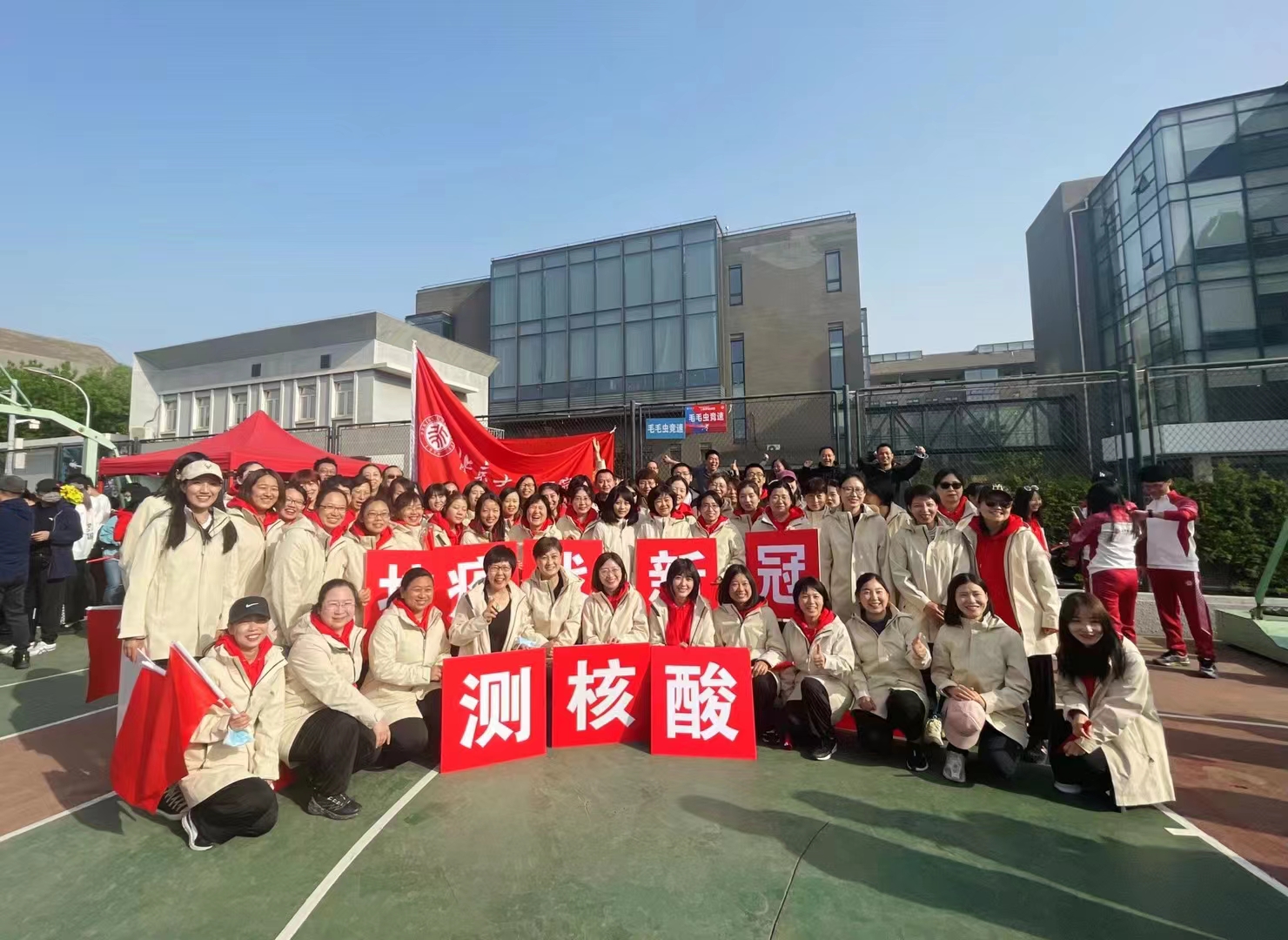 人间四月芳菲尽,五四体育场绿茵茵、充满生机的草坪上又迎来了2022年大学生春季运动会。校医院的员工们在紧张的抗疫工作之余,传承校医院的光荣传统,积极参加各项比赛,在运动场上燃烧汗水与激情,绽放着青春与梦想。入场式,大家踏着坚实的步伐,高举战斗的誓言,齐声高呼:“共同抗疫战新冠、全力以赴测核酸”,代表着守护全校师生健康安危的决心,作为健康的守护者的我们,无数日夜的奋战,不忘初心,坚定向前,永不放弃。