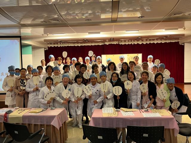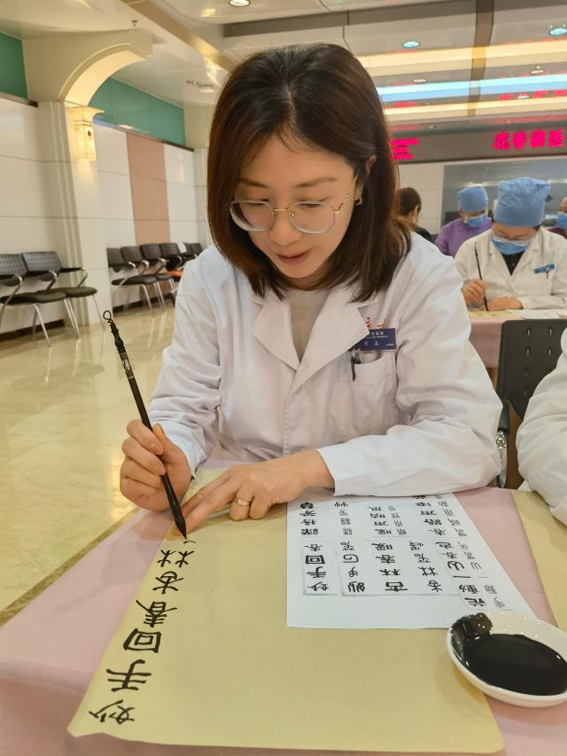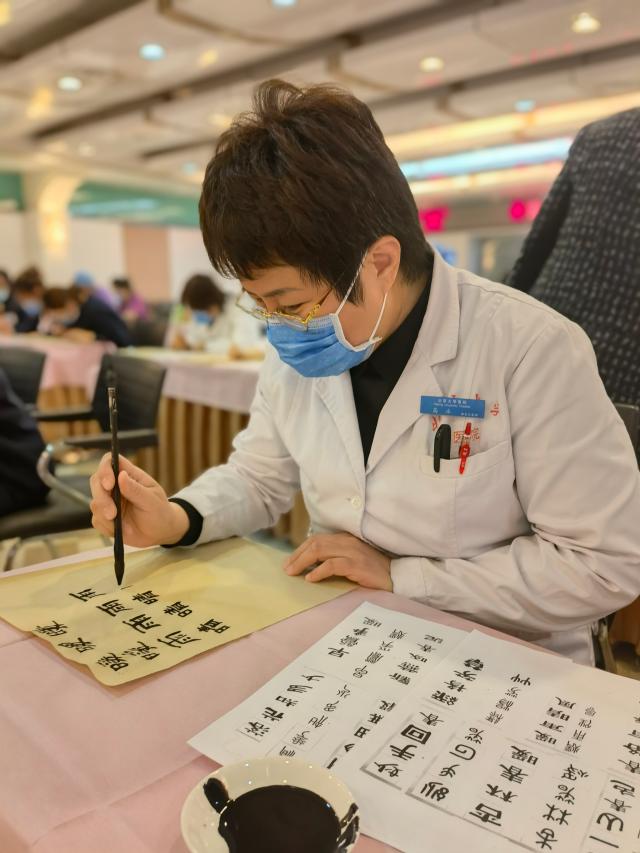 医院工会领导特邀“一相书画”工作室的北京大学校友书画协会书法公益班讲师沈海娃老师和李敏老师为大家授课,用篆书和隶书书写扇面。老师讲了篆隶的起源和发展历程,溯本求源,中国书法艺术根基雄厚历史悠久。从甲骨文到秦代李斯的小篆,再到秦汉隶书,隶书上承篆书下开魏晋、南北朝,直至五体的完整体系的形成。学习中国书法艺术成为了解中华文化的重要一环。