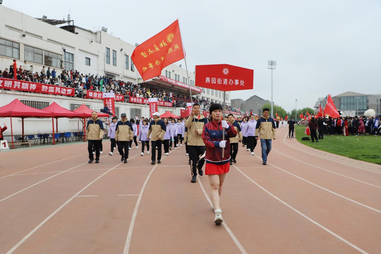 运动会开幕式上,燕园街道入场式方阵早早在场外整装待发,大家着装干练简洁,迈着矫健、整齐的步伐走向主席台,以昂扬向上的姿态接受现场观众的检阅,用热情和活力向全校师生展现街道职工良好的精神风貌。