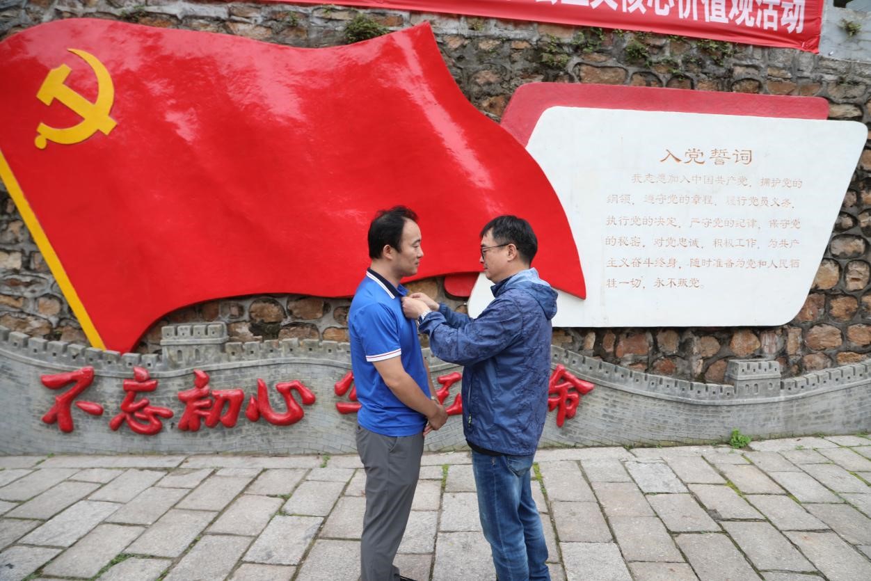 在纪念馆前小广场,街道党工委委员、纪工委书记、工会主席杨跃平为今年入党的新党员佩戴了党徽。面对鲜艳的党旗,在街道办事处副主任崔龙的领誓下,全体党员怀着敬畏之心缅怀先烈,重温入党誓词。“我志愿加入中国共产党……随时准备为党和人民牺牲一切,永不叛党。”慷慨激昂、铿锵有力的誓词响彻全场,深深烙印在每位党员心上。