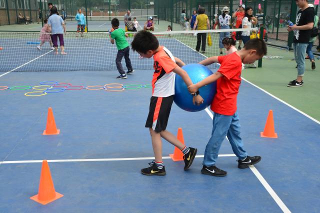 活动分为大朋友游戏区、小小朋友游戏区和阅读区三个场区。大朋友区设置了沙包掷盘、跳格子、夹背球障碍等游戏,小小朋友区设置了打地鼠、数蜡烛、七巧板等智力开发游戏。无敌风火轮游戏中,孩子们迈着一致的步伐稳稳地向前走着,摸石过河游戏中,孩子们在自已的努力下搬动脚底下的砖块走向终点,终极挑战—趾压板游戏锻炼了小朋友的胆量、耐力与意志力。在小小朋友区家长们耐心地带着孩子们做各项游戏,更好地在游戏中体会亲子互动。