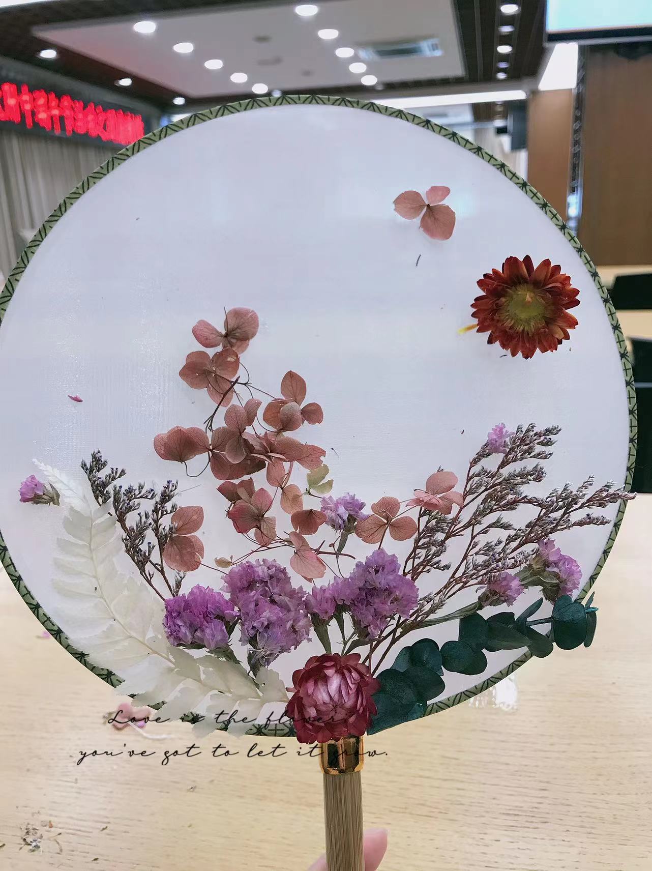 自己完成作品后,老师们互相交流,取长补短、相互鉴赏,在欢乐的笑声中,动手动脑中体验团扇制作。