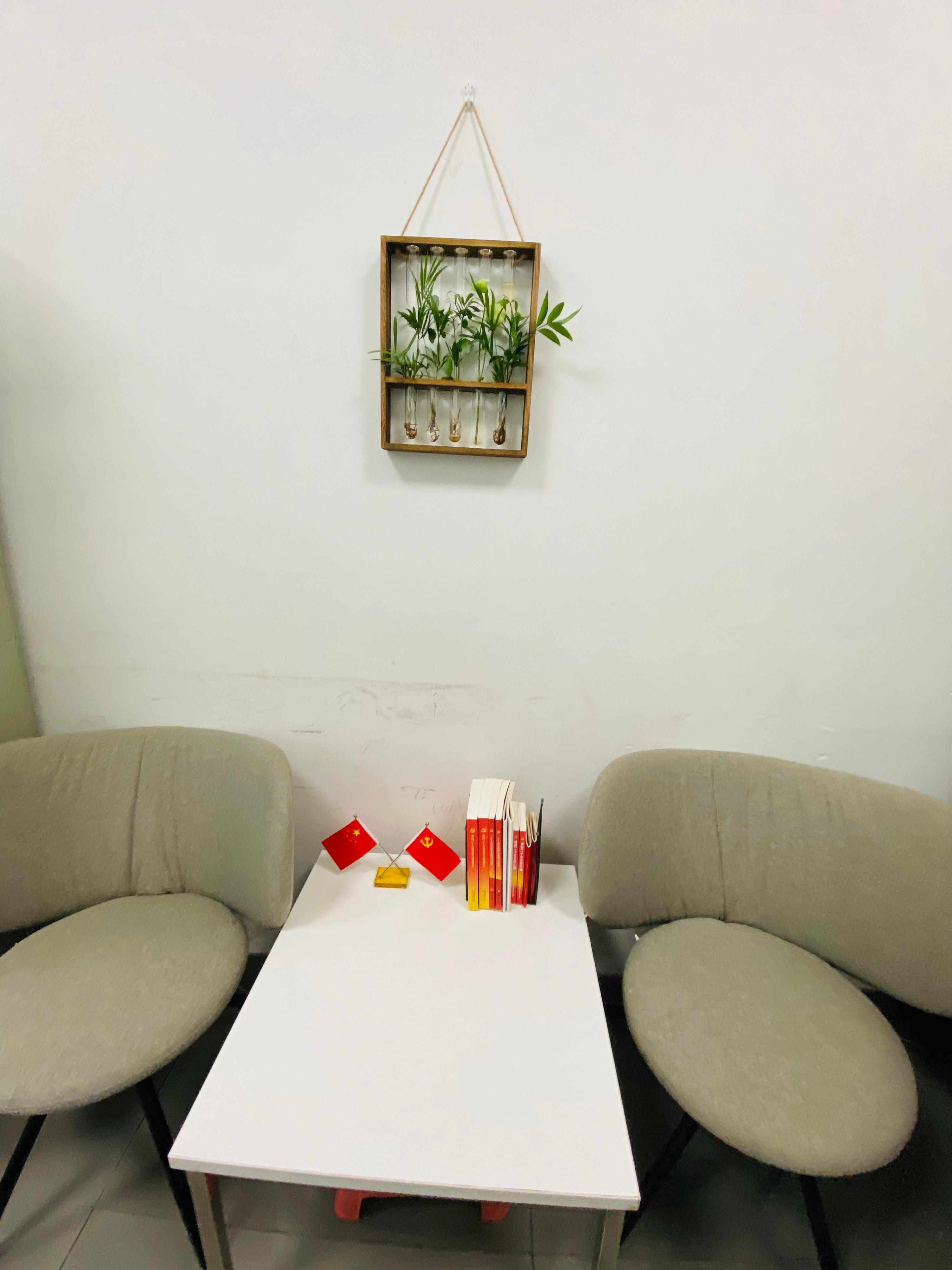 不同学科的办公室布置体现着学科特色,语文老师的办公空间有中华传统文化的元素,体现了老师们的人文情怀;英语老师的办公室更有国际视野,开放的胸怀体现在一草一木中;地理老师的办公室用地图、地球仪装点,历史老师的办公室给人一种穿梭在时间隧道的感觉,生物老师的办公室更加贴近自然等等。