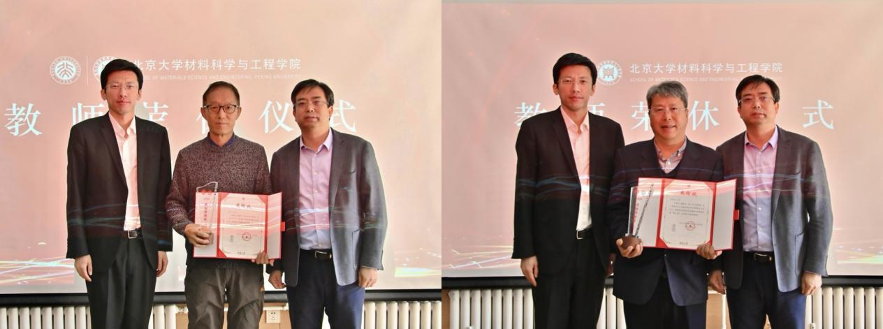 2024年3月6日中午,北京大学材料科学与工程学院举办韩平畴、董蜀湘、白树林教授荣休仪式。北京大学党委常委、副校长、材料科学与工程学院首任院长张锦院士,学院院长邹如强,党委书记李明出席,学院全体教师与学生代表欢聚一堂。仪式由党委副书记郭少军主持。