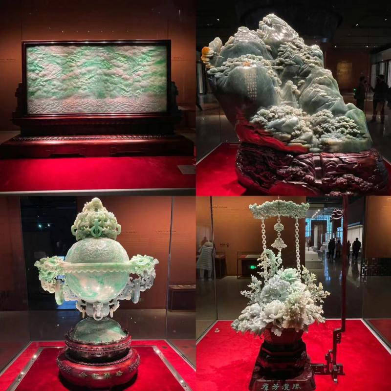 随后,大家参观了中国历代服饰泥塑展,了解了中华服饰的重要发展节点,以及“文脉华滋”及“美好生活”—中国工艺美术基本陈列展,近距离观赏了玉雕、石雕,刺绣、漆器等多类工艺品。特别是四件堪称国宝级的大型翡翠艺术珍品《岱岳奇观》《含香聚瑞》《群芳揽胜》《四海腾欢》,在聆听部分讲解后,无不赞叹技艺之精,老师们纷纷驻足拍照并交流感想。