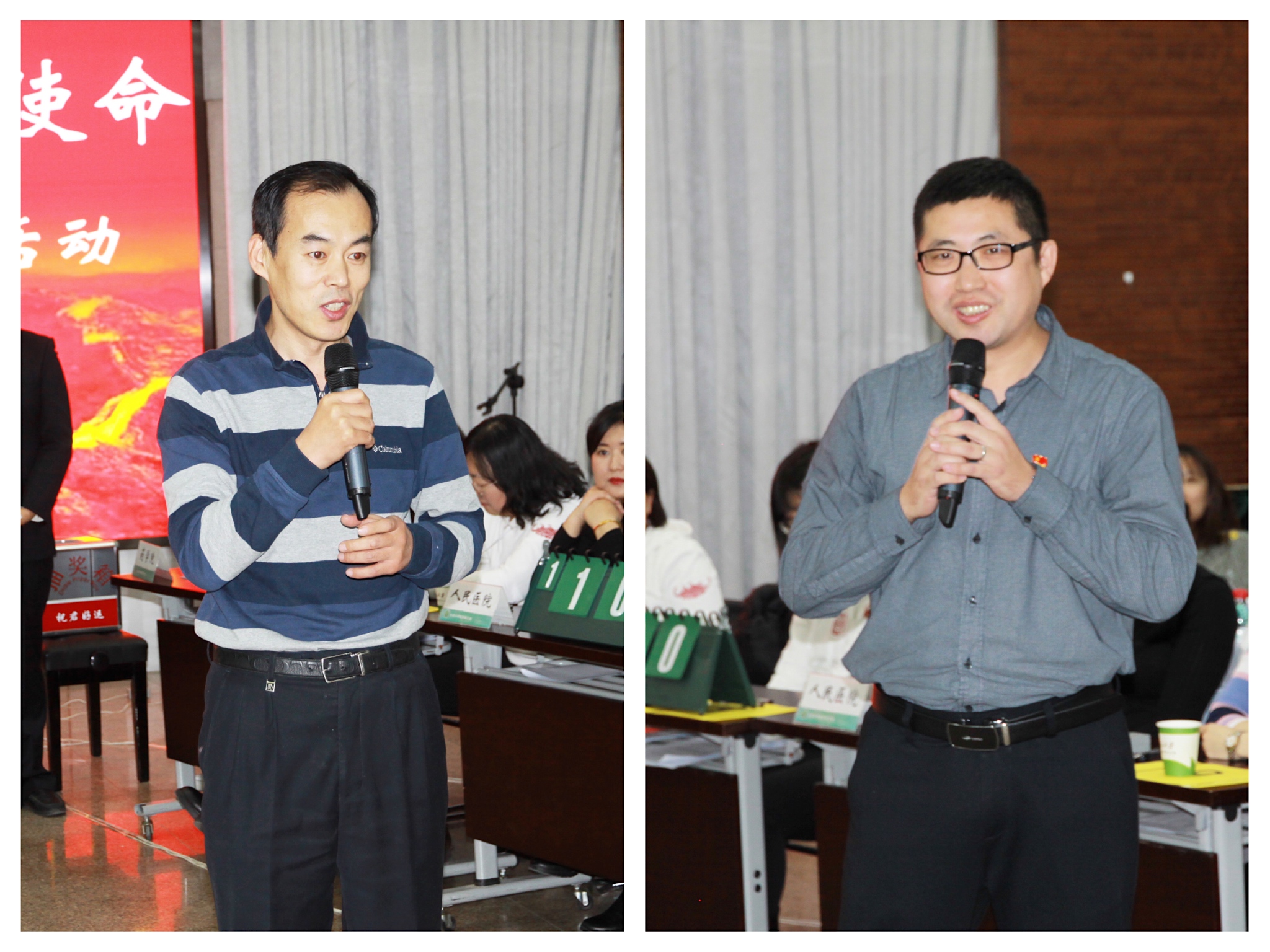 11月27日下午,“不忘初心 牢记使命”主题教育知识竞赛在医学部工会活动厅举办。医学部党委副书记、工会主席朱树梅,医学部工会常务副主席刘穗燕,医学部工会副主席董惠华、詹思延,医学部第十二届工会委员会委员,各二级单位工会主席、常务副主席、副主席,参赛选手,啦啦队员共100余人参加。医学部党委组织部副部长张永明,医学部党委宣传部副部长陈平,医学人文学院副书记于新亮组成仲裁小组。知识竞赛由北医三院普外科王亮主持。