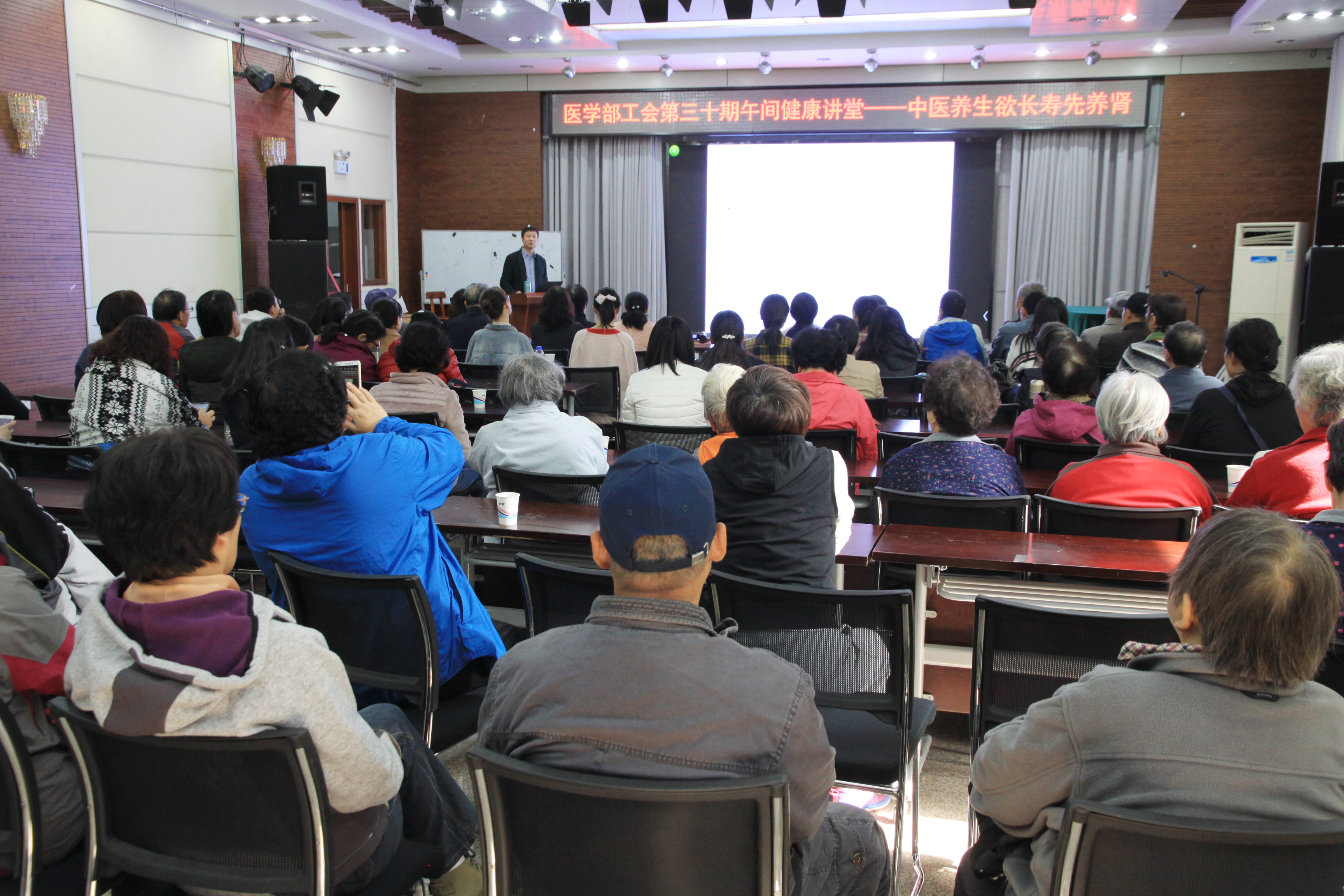 10月22日中午,医学部工会第三十期午间健康讲堂在工会活动厅举行。第三医院中医科主任医师史成和为80余名教职工做了“补肾与养生”的健康讲座,本次活动由医学部工会与部医院联合举办。