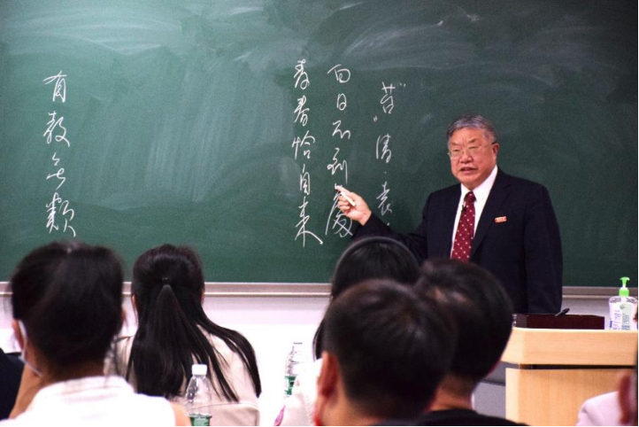 开学典礼结束后,中文系程郁缀教授引用清代诗人袁枚的诗歌《苔》,拉开平民学校第一课《古典诗歌与人文精神》的序幕。他以“苔花如米小,也学牡丹开”勉励北大平民学校学员努力学习,绽放生命光彩。今年是程郁缀教授第十次参与平民学校课程教学。在本次课程中,他为学员们讲解了《诗经》《楚辞》《观沧海》《茅屋为秋风所破歌》和《游子吟》等古诗文作品,亦庄亦谐、深入浅出的讲解让学员们受益匪浅,教室里不时发出阵阵笑声。