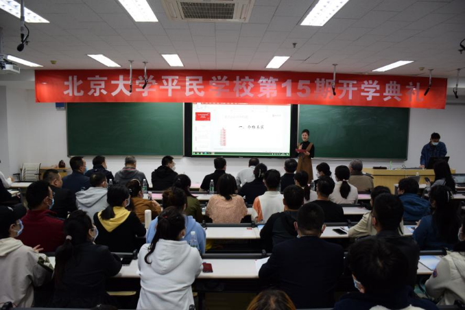 校工会副主席、平民学校执行副校长张小萌介绍说,北京大学平民学校的历史最早可以追溯至1918年,时任北大校长蔡元培提出“劳工神圣,人人平等”,创办了“校役夜班”,而后,李大钊、傅斯年、罗家伦、邓中夏等北大师生纷纷投身平民教育运动,组建了“平民学校”和“平民教育讲演团”。2006年,北京大学秉承“传承平等理念,成就平民梦想”的办学宗旨,重新举办平民学校。截止到2021年,共培养了1334名学员,累计有900余名师生志愿者参与此项工作。由于疫情原因,15期教学采取线上线下相结合的方式,医学部25名学员通过北大教学网进行在线学习。今年有来自中文、心理、国际关系、经济、历史、生物、天文、社会学各个领域的9位教师为大家授课,20名老学员志愿者和20位学生志愿者为新学员服务。