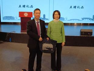 工会副主席张小萌转交纪念品予马来西亚驻华使馆公使衔参赞黎育财