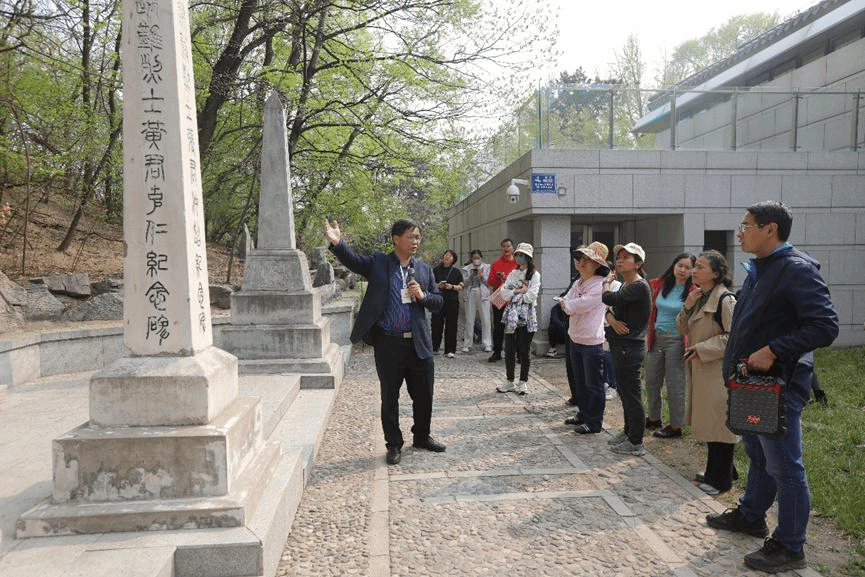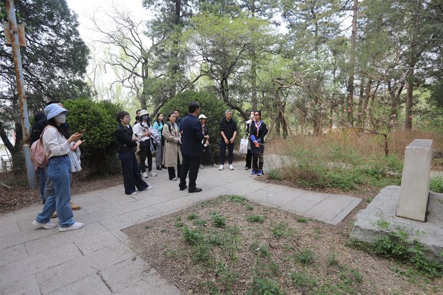 杨虎老师带着大家在校园里徐徐前进,边走边讲。在未名湖畔,皇家园林的秀美风光令人流连。作为曾经的皇家赐园,镜春园、畅春园、淑春园、朗润园、蔚秀园,每个园林背后都有着一段引人入胜的历史故事。大家来到湖南岸山坡上的斯诺墓,听取“中国人民的美国朋友埃德加·斯诺”的故事。