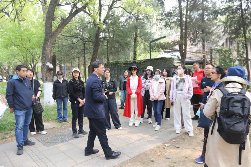 春暖花开,燕园风光正好。2024年4月12日上午,校工会干部培训班面向全校工会干部开展“校园风物导览”主题活动,通过实地走访的形式,让工会干部们更全面、丰富、立体地了解北大历史和文化,帮助工会干部“知校、爱校、荣校”。北京大学出版社副社长、副总编杨虎老师为大家作导览,来自校本部、医学部和附属医院的工会干部40余人参加了活动。活动开始前,校工会副主席田越为杨虎颁发了工会纪念卡牌。