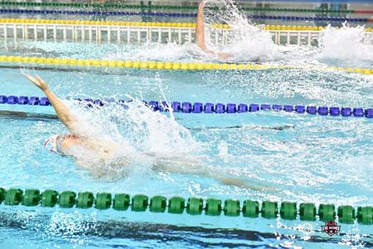 随着裁判的一声哨响,比赛在上午9点正式开始。泳池中,选手们如鱼儿般穿梭,或疾速冲刺,或优雅转身,每一个动作、每一次舒展都反映出他们对游泳运动的热爱和精湛的技巧。