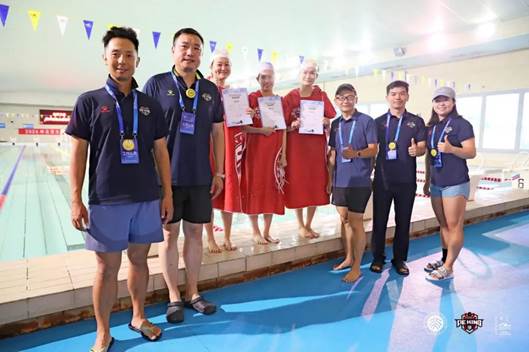 经过激烈角逐,各个组别的冠军相继产生。获得优异成绩的选手们收获了荣誉证书和奖牌,并与颁奖嘉宾合影留念。本届比赛中,组委会还为参赛教职工们定制了精美的“北大红”浴袍,对于经常游泳的选手们来说,这份奖品兼具纪念意义和实用价值。