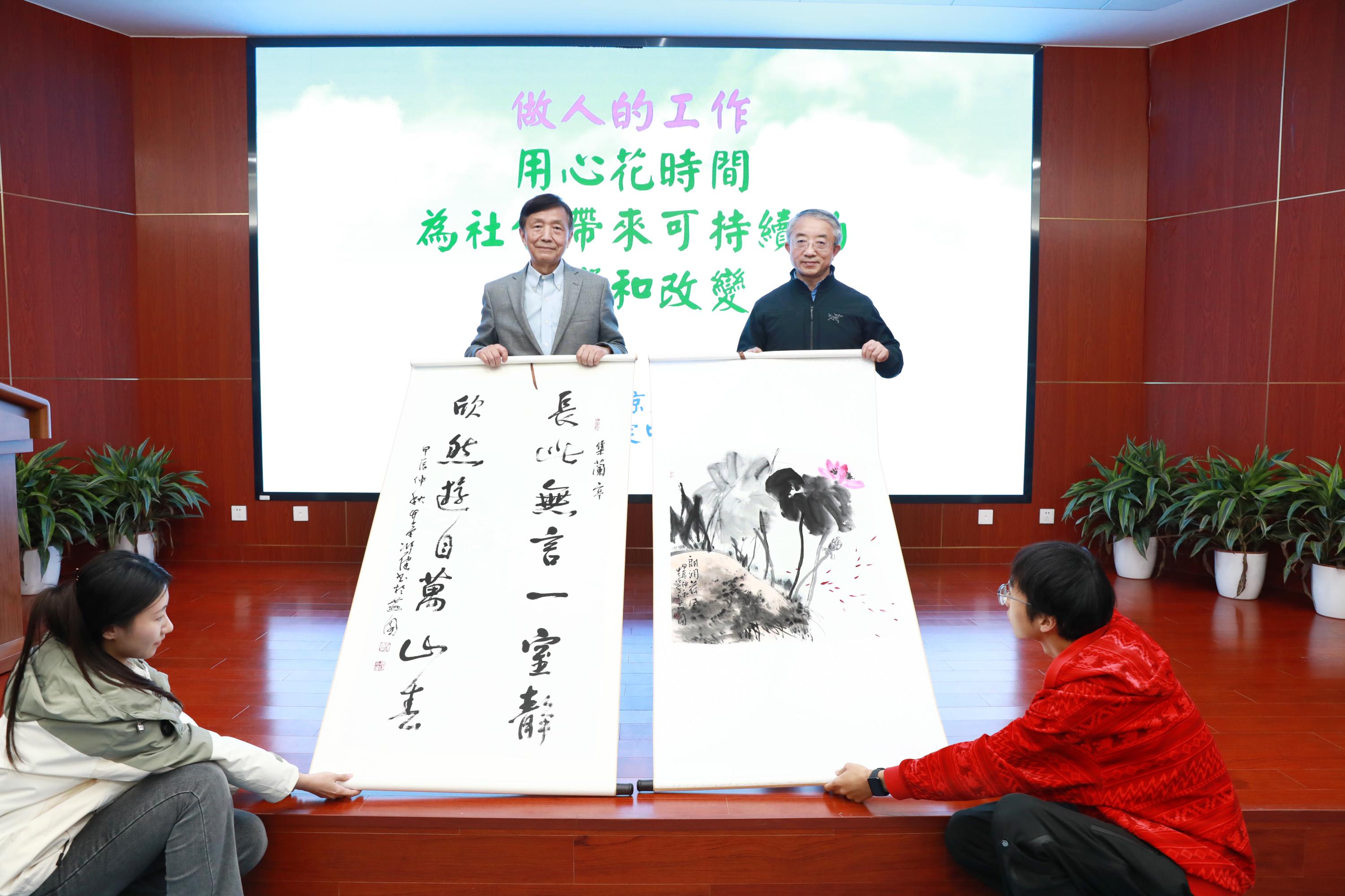讲座的最后部分,81岁的彭定中先生与在场的学员进行了互动交流,耐心地回答了大家提出的问题,分享了自己的看法和建议。讲座结束后,安钰峰主席向彭定中先生赠送了北大城环学院教授,燕园印社社长冯健的书画作品。