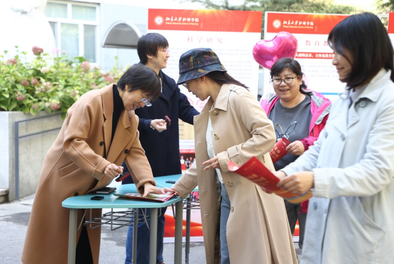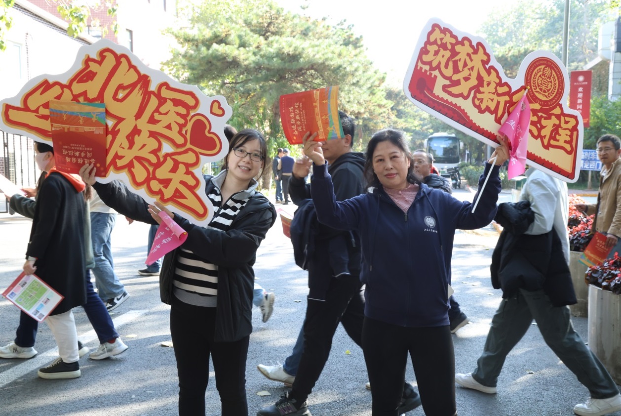 校友是学校宝贵的财富,他们扎根祖国大地,为国家和社会的进步贡献着自己的力量。不管走多远,他们始终心系北大医学,支持学校的发展建设。此次活动特别邀请北医校友代表组成“首届校友方队”,与学生轮滑队、基础医学院、药学院、公共卫生学院、护理学院、医学人文学院、医学部机关、医学部后勤、医学部产业方队汇聚体育场。发令枪响,1500余位师生及校友代表集结出发,各方队步调统一,精神抖擞,北大医学人在新征程上,迈出坚定的步伐。体育场北门“我爱北医”的照片墙,沿途随风飘扬的道旗,每一个盖章点别具特色的置景,都引起了无数北大医学人的共鸣。师生及校友代表们在秋意浓浓的美丽校园里行进,享受着健步走的快乐。