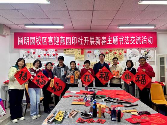 此次活动,既送新春之福,暖人心扉;亦扬传统之美,启智增慧。燕园印社骨干冯健、张岩、王东辉、范爱文、孙德利、郭志全、武弘麟、戴淑萍、倪宇洁等老师参加了活动。大家共同展望未来,协会当奋勉不怠,创新形式,丰富内涵,展文化之魅力,绽校园之华蕤,为师生带来更多富有创意和文化内涵的活动,助力北大校园文化在传承与创新中绽放更加绚烂的光彩,让更多人在这片文化沃土里感受传统文化的魅力,共同谱写北大校园文化的新篇章。