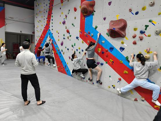 通过这样细致入微的对比教学,老师们迅速掌握了动作要领,对攀岩技巧有了更深刻的理解。